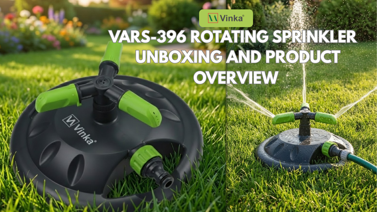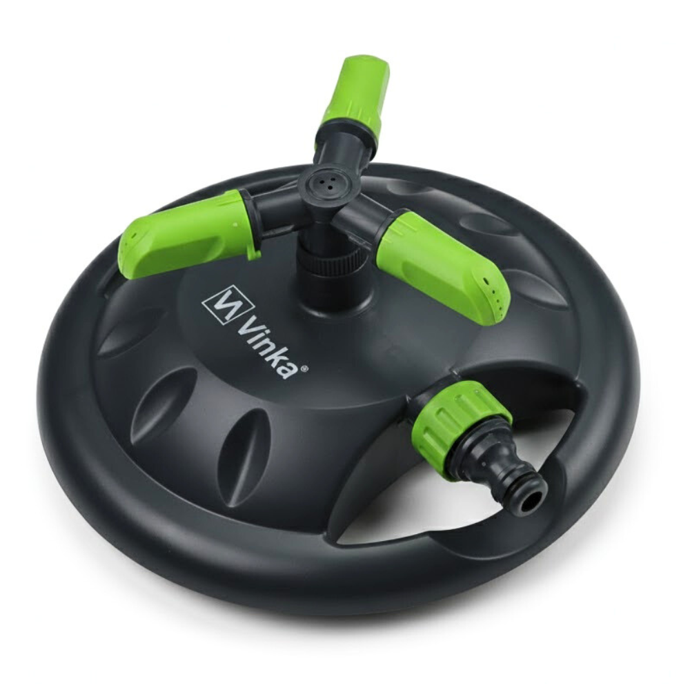 Description of Vinka 3 Arm Revolving Sprinkler VARS-396Keep your lawn lush, green, and evenly watered with the Vinka 3 Arm Revolving Sprinkler on Base, designed to make garden watering effortless and efficient. Featuring a 5-hole precision spray system, automatic 360° rotation, and a strong, stable base, this sprinkler ensures uniform water distribution without dry patches or overwatering. Its modern, high-quality design and universal hose pipe connector make it easy to set up and use, delivering reliable performance for lawns, gardens, yards, and outdoor spaces with minimal effort and maximum coverage.