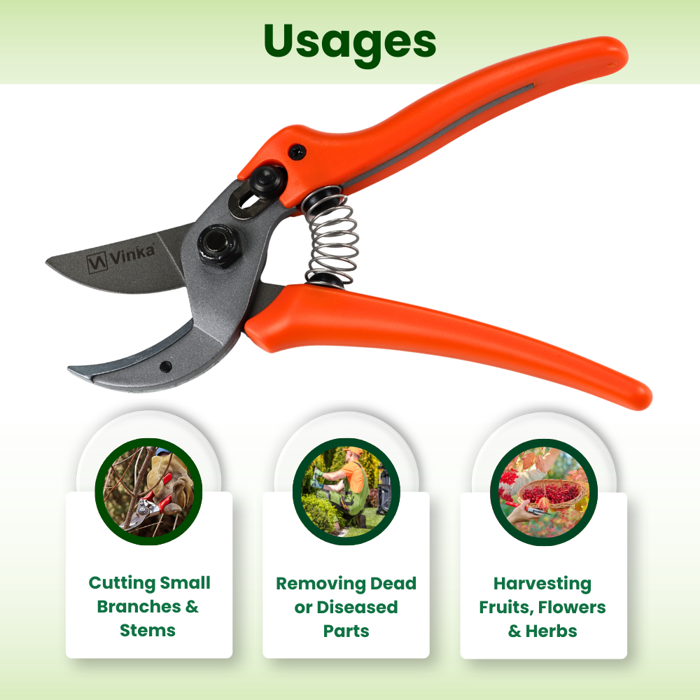- PROFESSIONAL PRECISION - This pruner cutter is useful and perfect for all types of pruning, cutting, trimming, thinning work in fruit growing, horticulture, viniculture garden, orchard, farm or forest, indoors and outdoors and will last a lifetime of service.